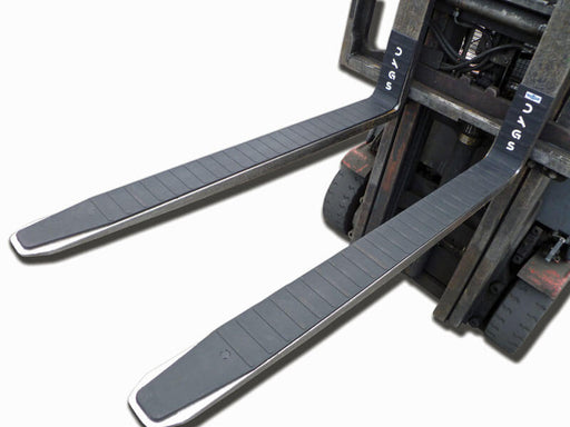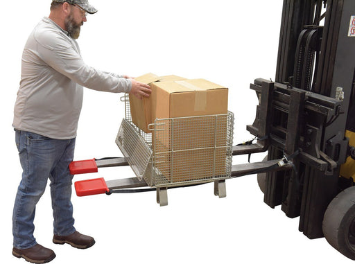 Install or remove fork extensions without lifting, pushing or getting off the fork truck. Easy to use. Forks not included.
