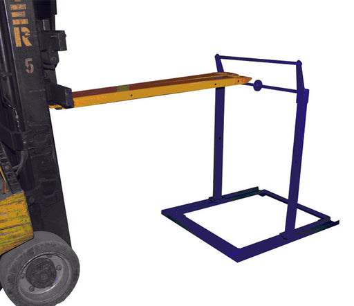 Designed to load and unload open or closed head drums horizontally in racks. Safety Restraint secures cradle to the forks to maximize safety and pr...