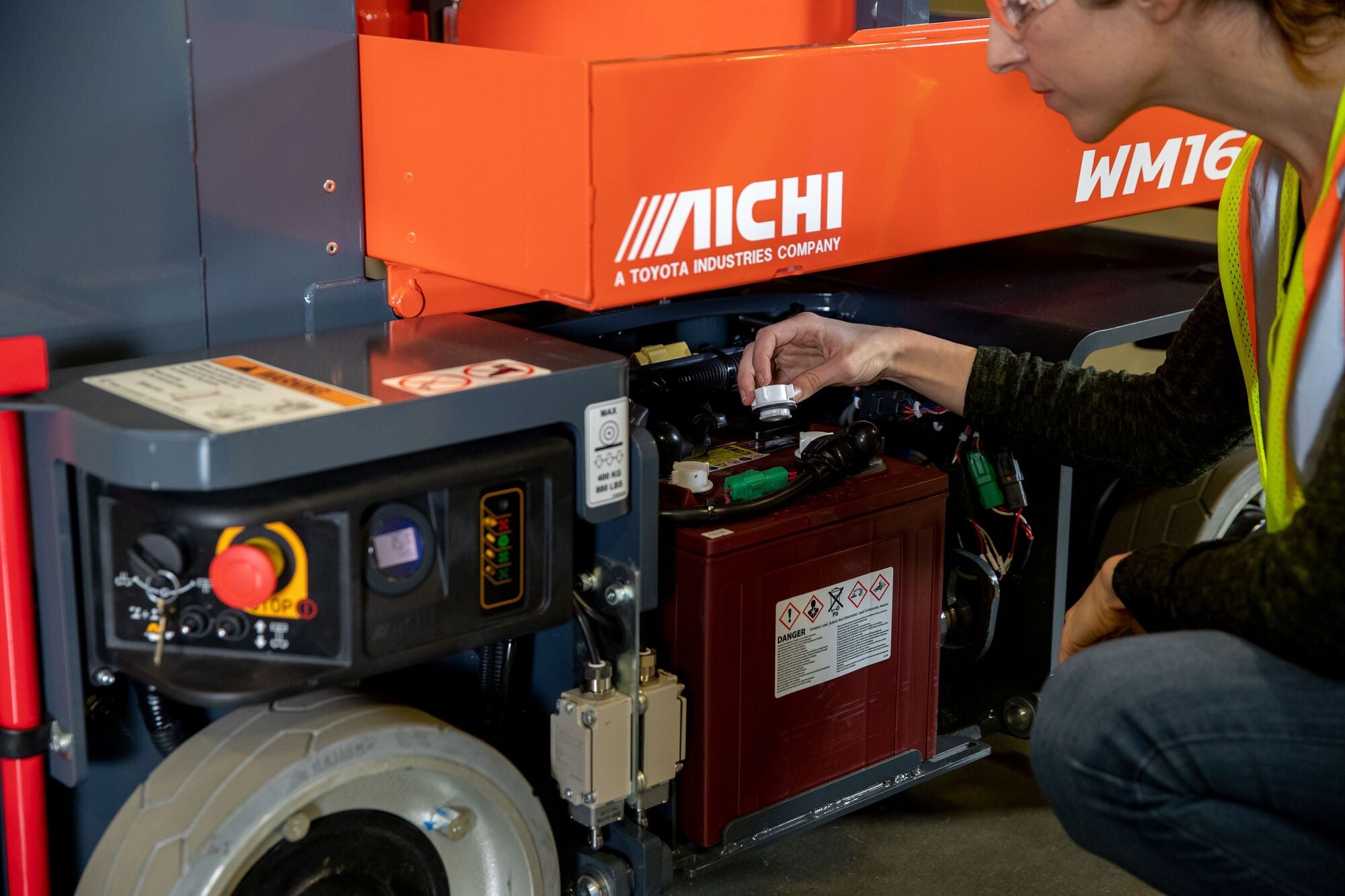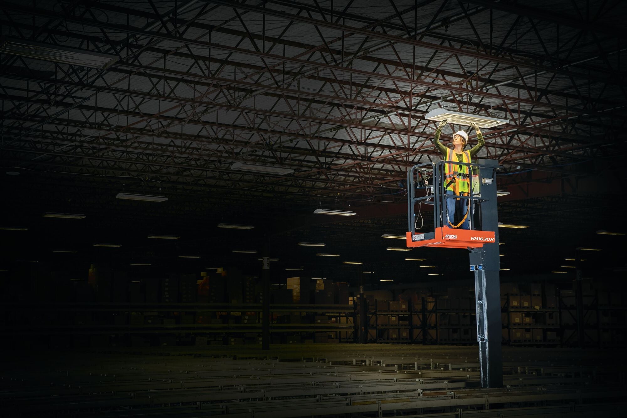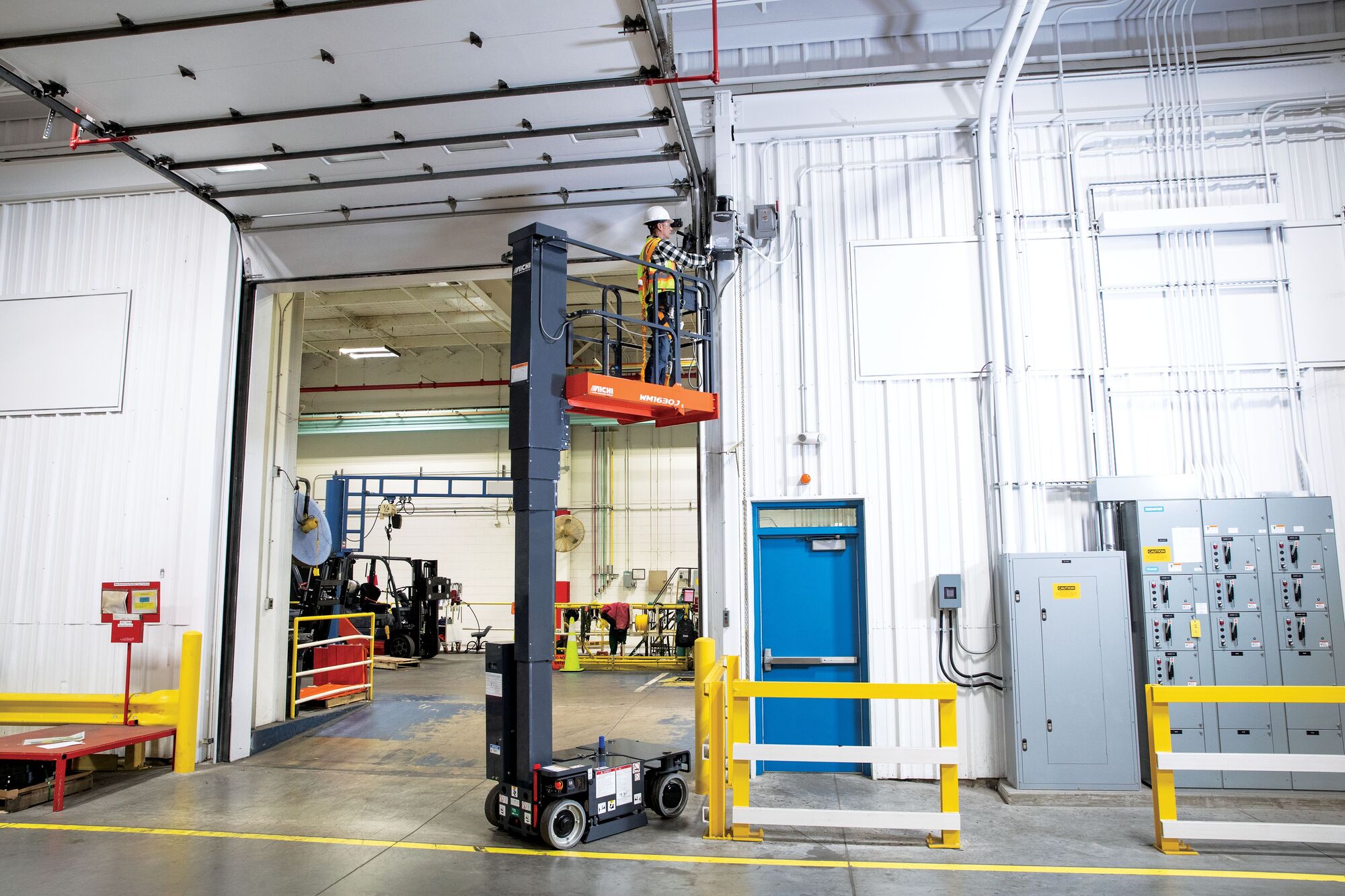 The AICHI Vertical Mast Lift delivers a versatile solution for tight-fitting construction and maintenance needs like piping, plumbing, and painting. A zero-degree turn radius offers the key to accessing hard to reach locations. Using state-of-the-art AC drive motors, it also offers precise travel and industry-leading run time that equate to greater efficiency and low cost of ownership.